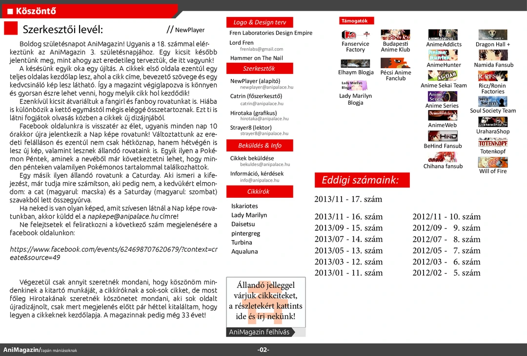 Március 20-án megjelent a magazin 18. száma, mellyel betöltötte 3. életévét. Olvassátok, véleményezzétek, jó szórakozást hozzá!