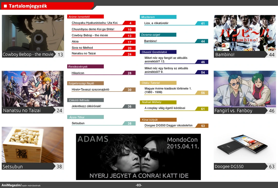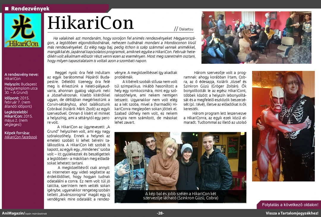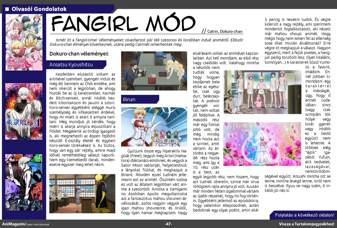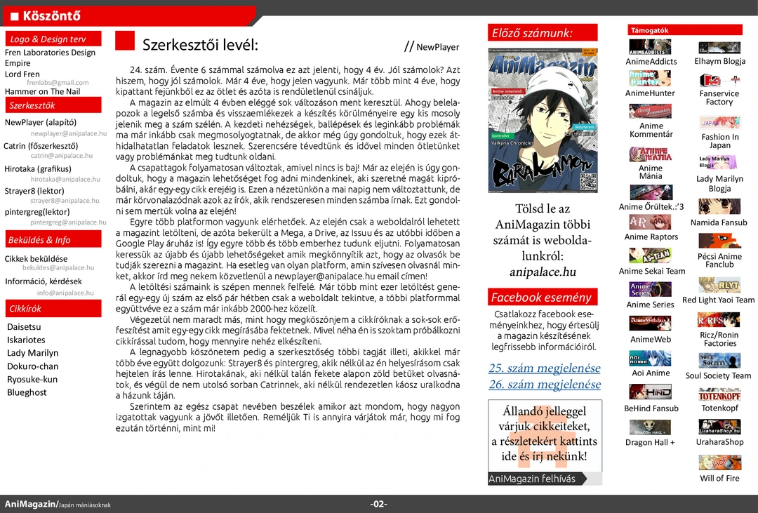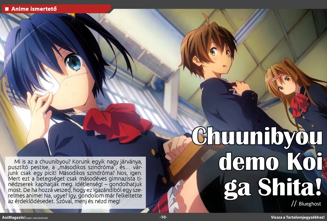 Uta koi, Sora no Method, Chuunibyou, Akira, Liza, a rókatündér ismertető, HikariCon beszámoló, tavaszi szezonajánló, fangirl&fanboy rovat az aktuális animékről, anime VHS kiadványok hazánkban és további bemutatók az ingyenes online AniMagazin legújabb számában! Március 24-én megjelent a magazin 24. száma. Olvassátok, véleményezzétek, jó szórakozást hozzá!