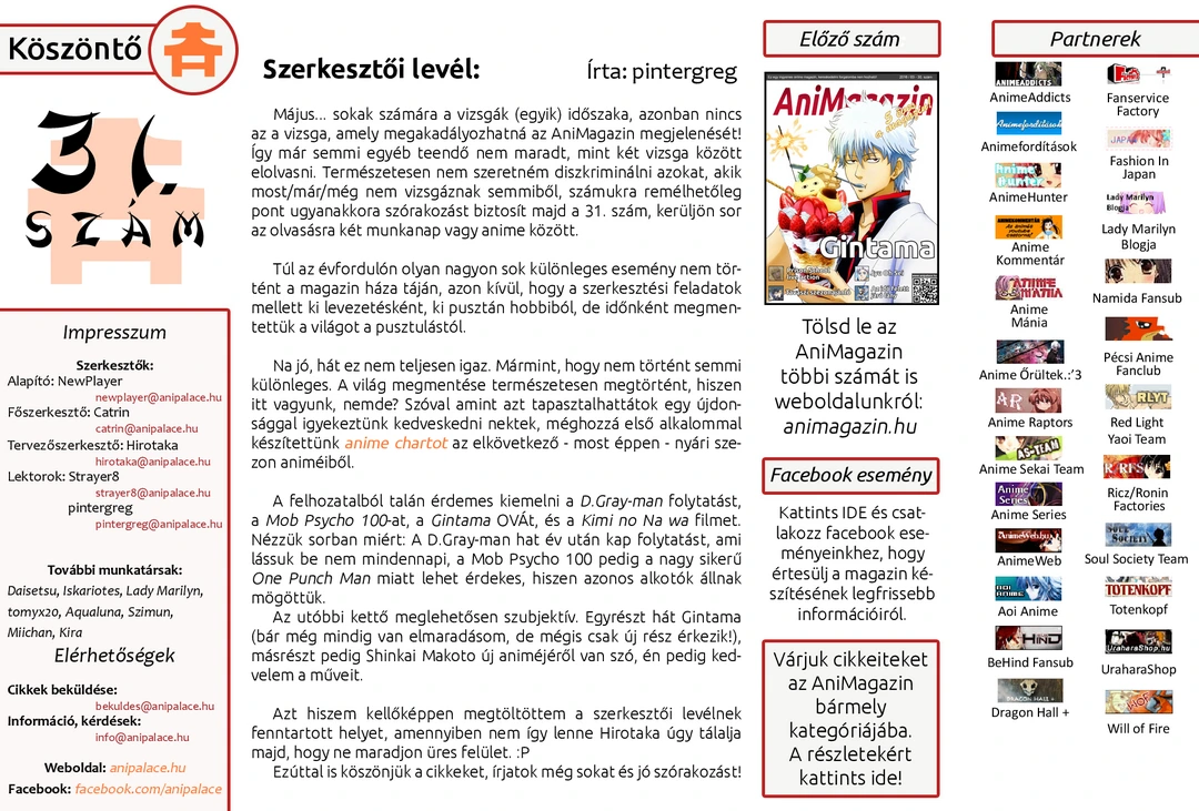 Május 25-én megjelent a magazin 31. száma. Jó szórakozást hozzá!