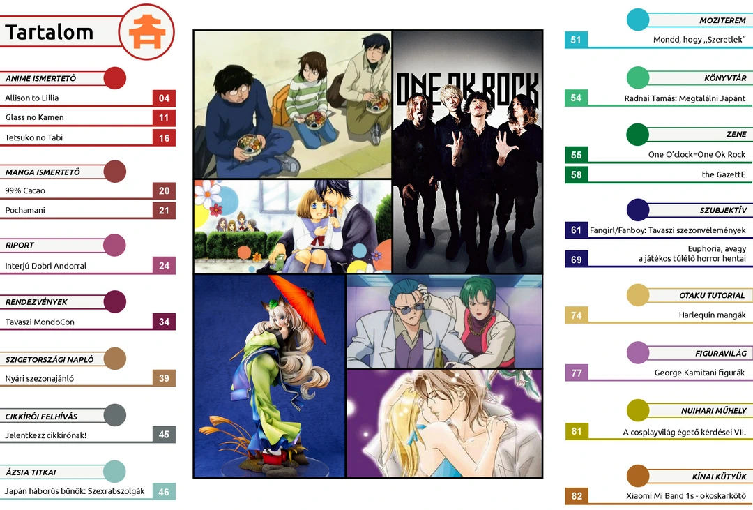 Glass no Kamen, Pochamani és Say “I Love You” ajánló, Dobri Andor vlogger interjú, Megtalálni Japánt könyv és Harlequin-mangák bemutató, zene, figura és cosplay rovat, tavaszi szezon vélemények, nyári szezonajánló és további cikkek várnak az ingyenes online AniMagazin legújabb számában!