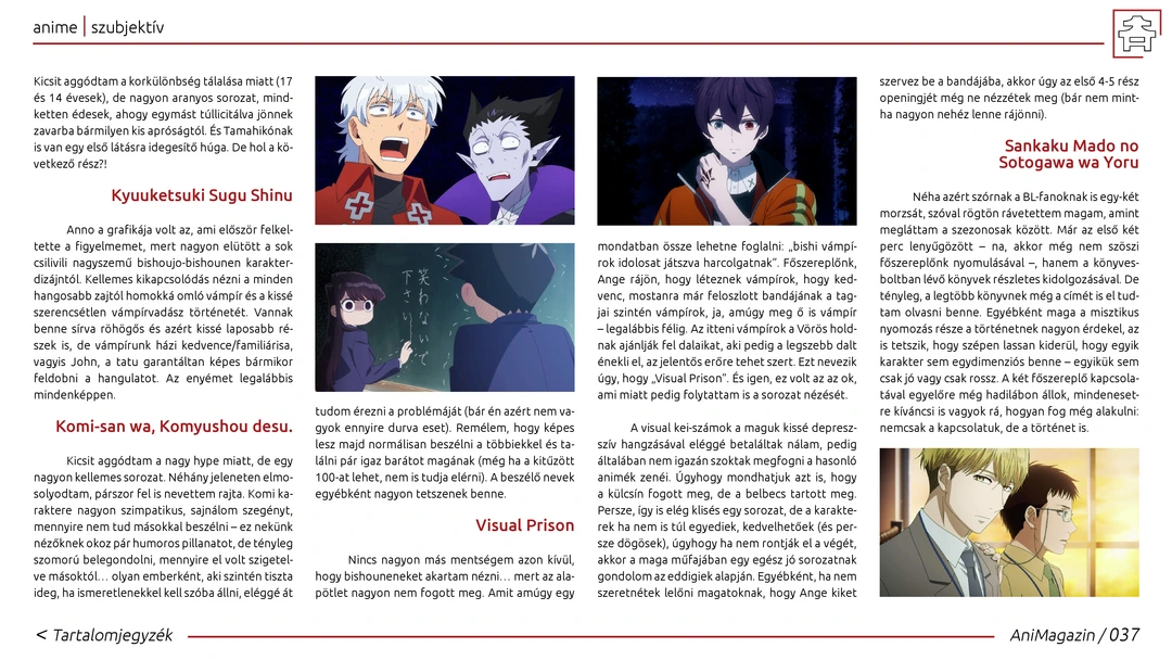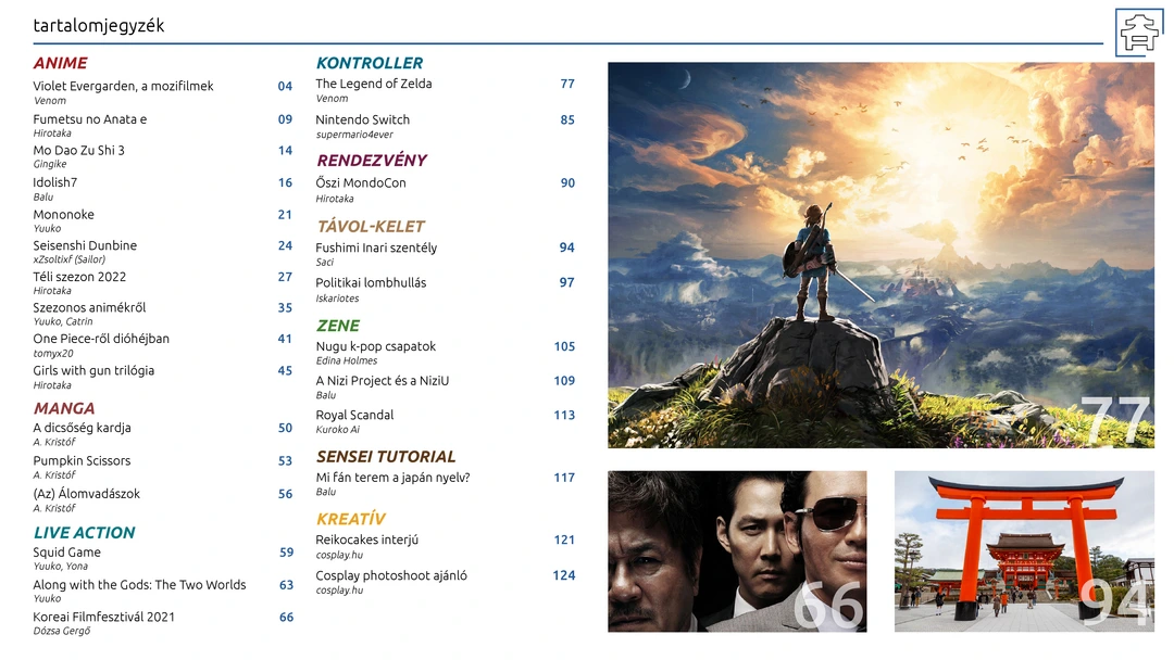 Fumetsu no Anata e, Mo Dao Zu Shi 3, Mononoke és téli szezonos ajánlók, retró rovat, vélemények az őszi szezonos animékről/donghuákról, One Piece és The Legend of Zelda bemutatók, Koreai Filmfesztivál és MondoCon beszámolók, manga (pl. Pumpkin Scissors), dorama (pl. Squid Game) és zenei (pl. Royal Scandal) ajánlók, Reikocakes cosplay interjú, és további remek cikkek az ingyenes online AniMagazin legújabb számában!