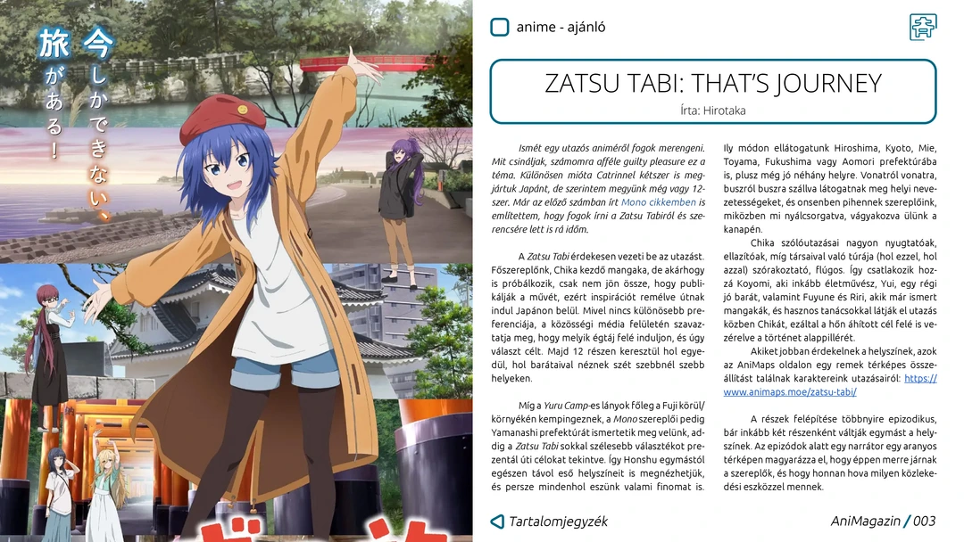Zatsu Tabi, Shakunetsu Kabaddi, Dr. Stone, Sanrio Danshi, valamint retró és nyári szezonos anime ajánlók, Rick és Morty anime kritika, interjú a Fumax Kiadóval, Sayonara Zetsubou Sensei és Homunculus manga, valamint Another Typical Fantasy Romance manhwa ajánlók, The Haunted Palace sorozat és japán túra/hegymászás történelem bemutatók, Budapest Comic Con és MondoCon beszámolók, valamint további remek cikkek az ingyenes, online AniMagazin legújabb számában!