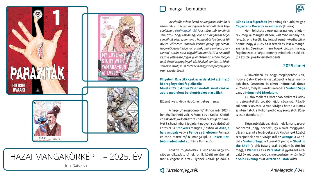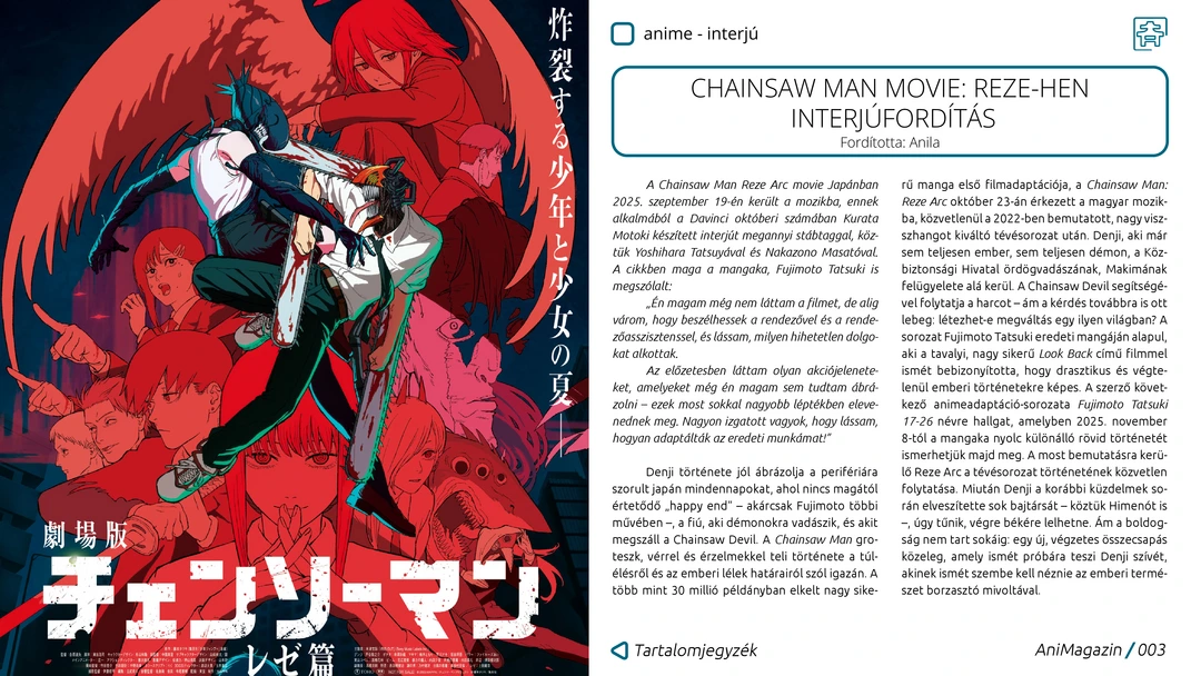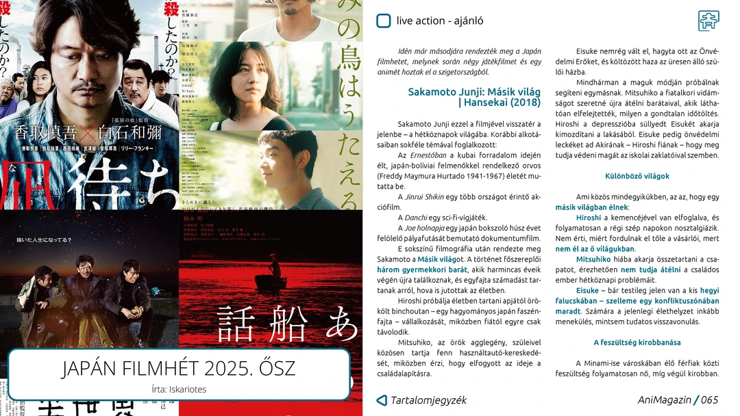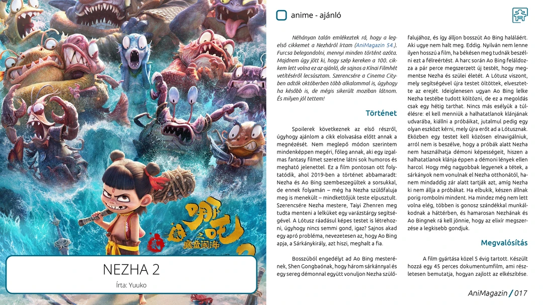 Who Made Me a Princess, Karaoke Iko! / Muchuu sa, Kimi ni., Nezha 2 és téli szezonos anime ajánlók, Uma Musume: Pretty Derby és Devil May Cry bemutatók, hazai mangakörkép, The Marshal King, Takopii no Genzai, Cesare és Sengoku mangaajánlók, Koreai Filmfesztivál, Japán filmhét és Őszi MondoCon beszámolók, interjú m00nnal, a Bor és kard balladája illusztrátorával, japán automaták története, valamint további remek cikkek az ingyenes, online AniMagazin legújabb számában!